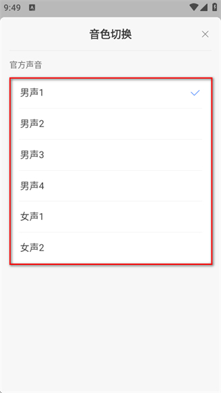 4、在音色切換界面,選擇男聲1、男聲2等音色選項(xiàng),完成切換操作。