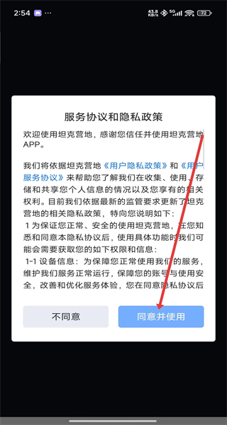 1、點擊“服務協(xié)議和隱私政策”彈窗的“同意并使用”,進入APP主界面。
