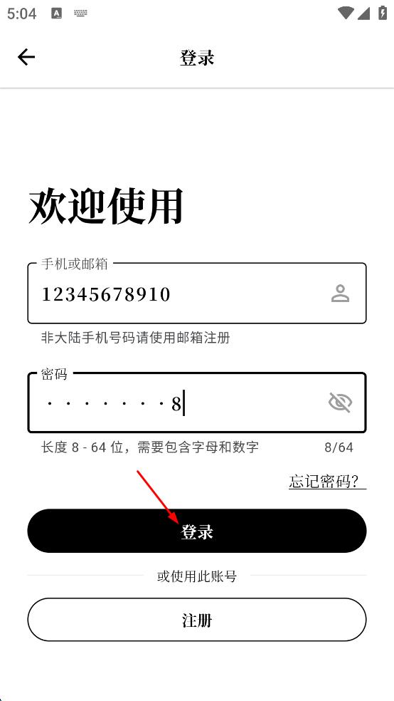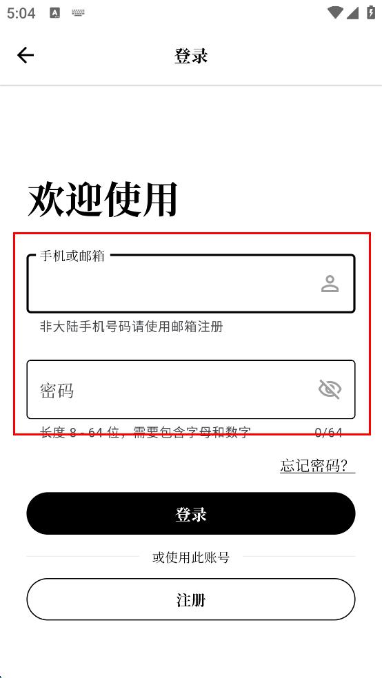 3、在登錄頁面輸入手機(jī)或郵箱,輸入密碼。