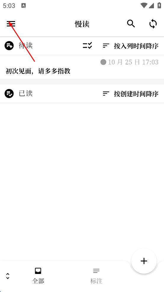 1、打開慢讀APP,點(diǎn)擊左上角菜單圖標(biāo),彈出功能菜單。