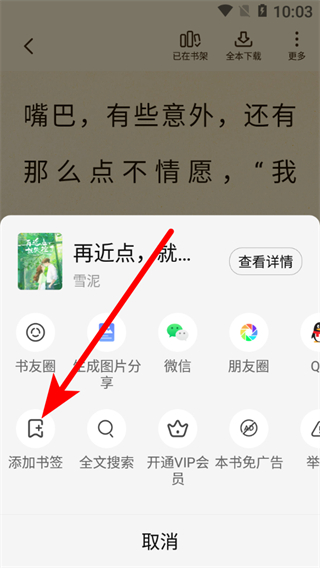 4、在功能菜單中,點擊添加書簽選項,即可完成書簽添加操作。
