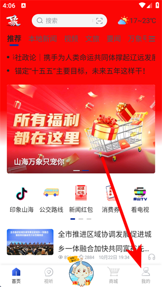 1、打開(kāi)山海萬(wàn)象APP首頁(yè),點(diǎn)擊底部我的,進(jìn)入個(gè)人的頁(yè)面。