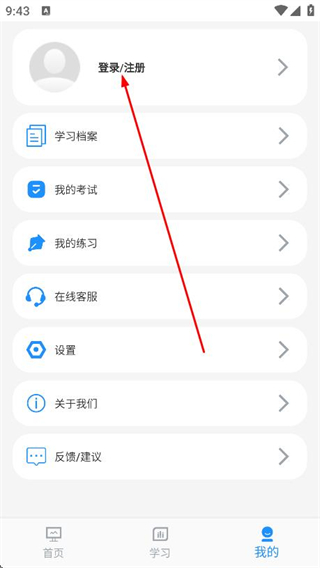 2、在我的頁面,找到并點(diǎn)擊上方登錄/注冊選項(xiàng)。