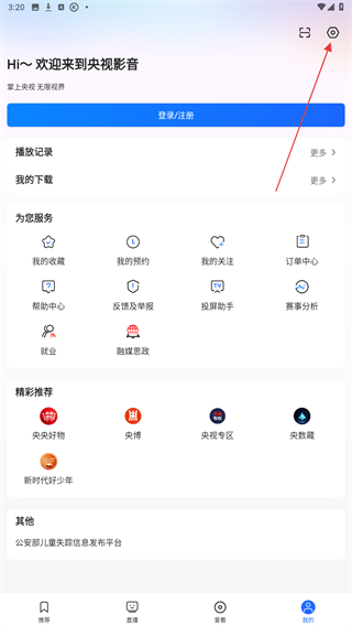 1、打開中國網(wǎng)絡電視臺APP,在首頁右下角我的圖標。