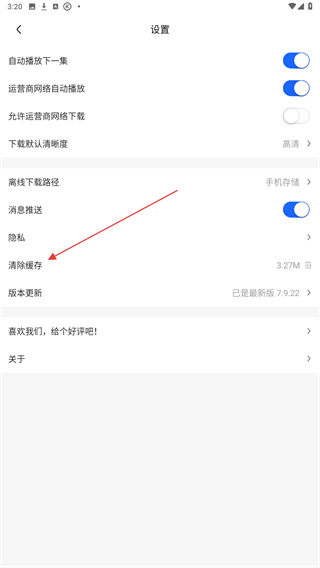3、進入設置的頁面內(nèi),用戶需選擇并點擊清除緩存的按鈕。