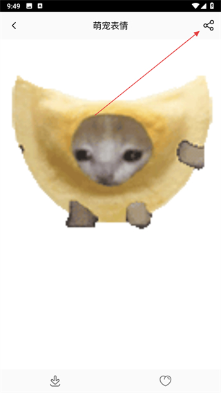 3、進(jìn)入萌寵表情詳情頁面后,點(diǎn)擊右上角的分享圖標(biāo)。