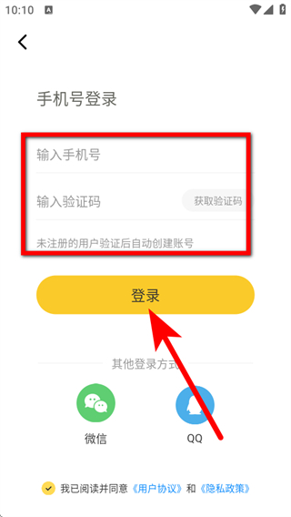 4、在手機(jī)號登錄界面,輸入手機(jī)號和驗證碼后點擊登錄按鈕,即可完成手機(jī)號登錄。