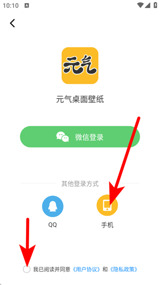 3、在登錄選擇頁面,勾選后,點擊手機(jī)選項,進(jìn)入手機(jī)號登錄界面。