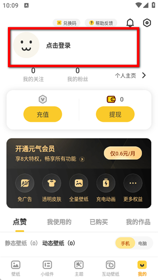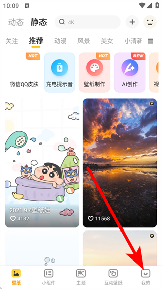 1、在元氣壁紙首頁,點擊右下角我的選項,進(jìn)入個人界面。