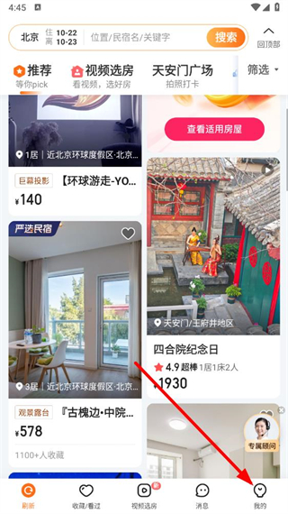 1、打開途家民宿app,在首頁(yè)點(diǎn)擊底部導(dǎo)航欄最右側(cè)我的選項(xiàng),進(jìn)入個(gè)人相關(guān)頁(yè)面。