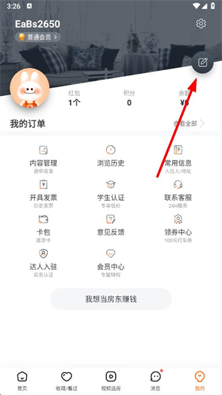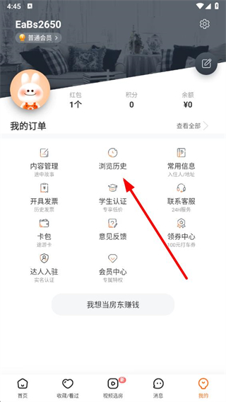 1、在途家民宿app主界面,點(diǎn)擊右下角我的選項(xiàng),進(jìn)入個(gè)人中心頁(yè)面。