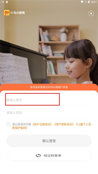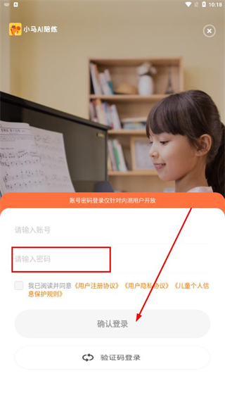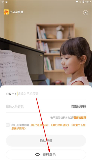 1、打開小馬ai陪練,在登錄頁面,找到并點擊密碼登錄。