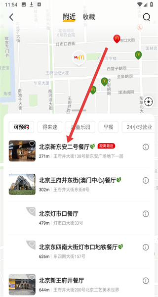 3、在附近餐廳列表中,選擇目標餐廳,比如北京新東安二號餐廳,進入該餐廳對應的服務頁面。