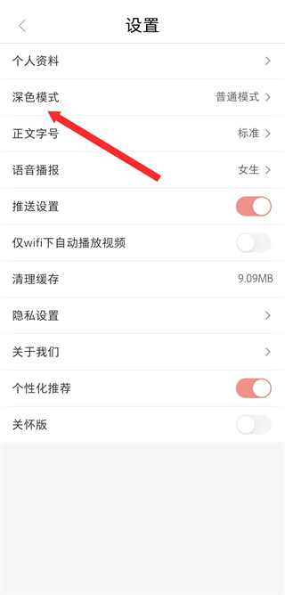 3、在設(shè)置界面中,找到深色模式入口,點(diǎn)擊進(jìn)入深色模式設(shè)置頁(yè)面。
