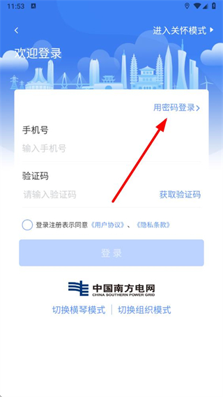 4、在頁(yè)面輸入手機(jī)號(hào)、驗(yàn)證碼和密碼,同意相關(guān)協(xié)議后點(diǎn)擊登錄按鈕,即可完成密碼登錄操作。