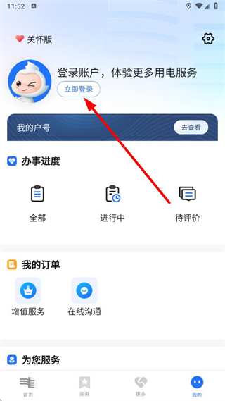 1、在南網(wǎng)在線app首頁(yè)點(diǎn)擊我的選項(xiàng),進(jìn)入個(gè)人頁(yè)面。
