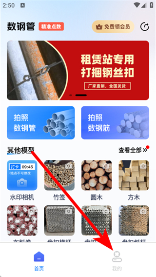 1、打開數(shù)鋼管APP,點(diǎn)擊底部導(dǎo)航欄的我的,進(jìn)入個(gè)人頁(yè)面。