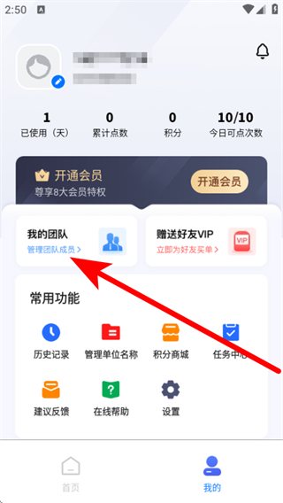 2、在個(gè)人頁(yè)面中,點(diǎn)擊我的團(tuán)隊(duì),進(jìn)入團(tuán)隊(duì)管理的界面。