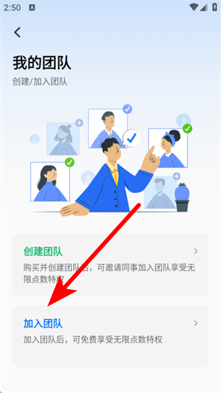 3、在團(tuán)隊(duì)管理的界面,點(diǎn)擊加入團(tuán)隊(duì),進(jìn)入加入團(tuán)隊(duì)頁(yè)面。