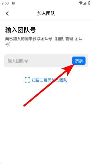 4、在加入團(tuán)隊(duì)頁(yè)面,輸入團(tuán)隊(duì)號(hào)后點(diǎn)擊搜索,按照提示完成團(tuán)隊(duì)加入操作。