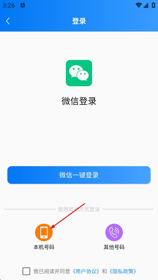 3、可選擇微信登錄或手機(jī)號(hào)碼登錄,選擇手機(jī)號(hào)碼登錄。