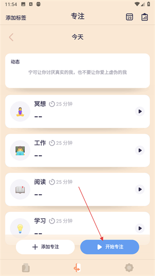 1、打開OffScreen應(yīng)用,點擊專注功能按鈕。