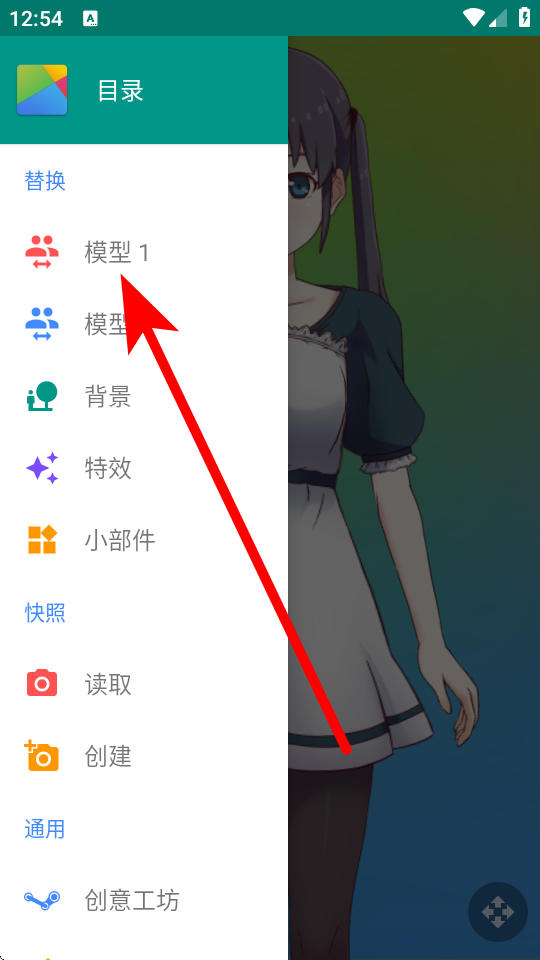 2、在目錄菜單中,點擊模型1選項,進入模型界面。