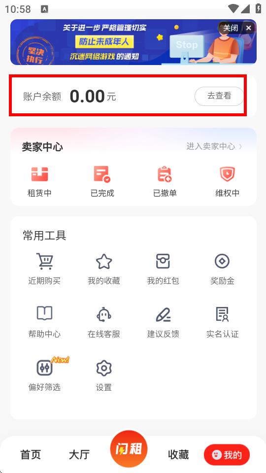 1、打開租號酷APP,點(diǎn)擊底部導(dǎo)航欄中的我的進(jìn)入個人頁面。