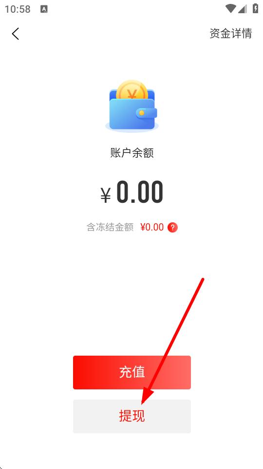 3、進(jìn)入資金詳情頁面后,點(diǎn)擊提現(xiàn)按鈕。