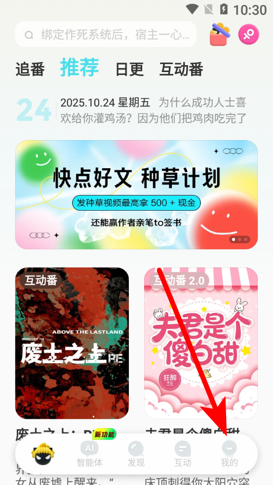 1、在快點閱讀推薦頁面,點擊右下角我的選項,進(jìn)入個人中心界面。