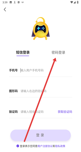 3、在個人中心頁面點擊“密碼登錄”,切換到密碼登錄界面。