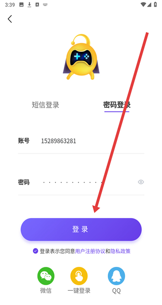 4、在密碼登錄界面輸入賬號和密碼,點擊“登錄”按鈕,完成賬號登錄操作。