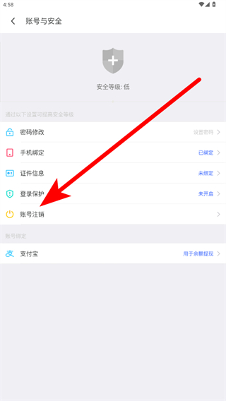 4.在賬號(hào)與安全界面,點(diǎn)擊賬號(hào)注銷選項(xiàng),按照提示完成賬號(hào)注銷操作即可。