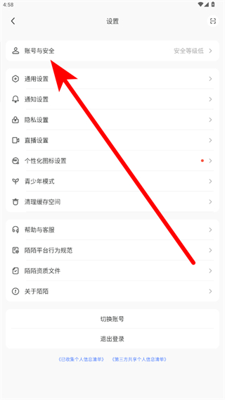 3.進(jìn)入設(shè)置界面后,點(diǎn)擊賬號(hào)與安全選項(xiàng)。