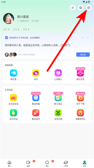 2.在個(gè)人中心界面,點(diǎn)擊右上角的設(shè)置圖標(biāo)。