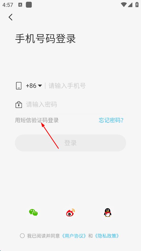 2、在登錄頁(yè)面,點(diǎn)擊“用短信驗(yàn)證碼登錄”。