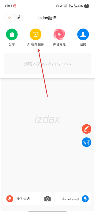 1、打開izdax翻譯應(yīng)用,點擊AI視頻翻譯選項。
