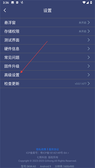 2、在設(shè)置頁面,點擊高級設(shè)置選項,進入高級設(shè)置頁面。