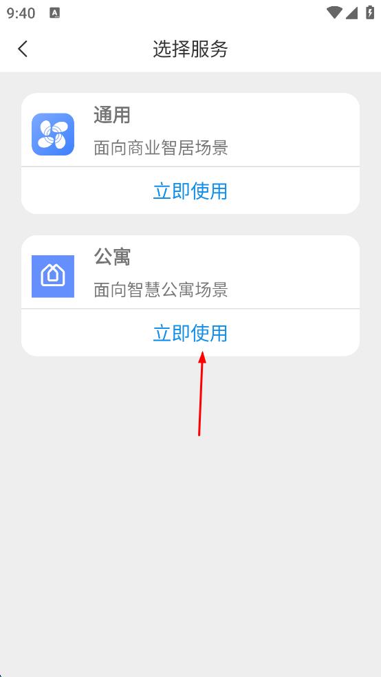 3、進(jìn)入選擇服務(wù)頁面,選擇如公寓等服務(wù),點(diǎn)擊立即使用。