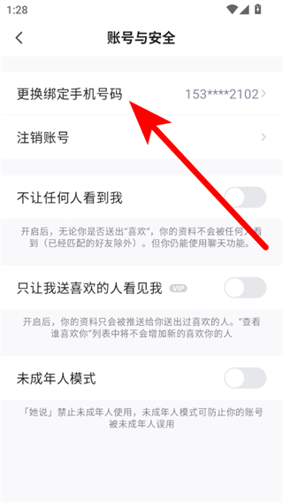 4、在賬號(hào)與安全頁(yè)面中找到更換綁定手機(jī)號(hào)碼選項(xiàng)并點(diǎn)擊,按照提示完成手機(jī)號(hào)碼的更換操作。
