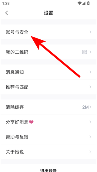3.進(jìn)入設(shè)置界面后,點(diǎn)擊賬號(hào)與安全選項(xiàng)。