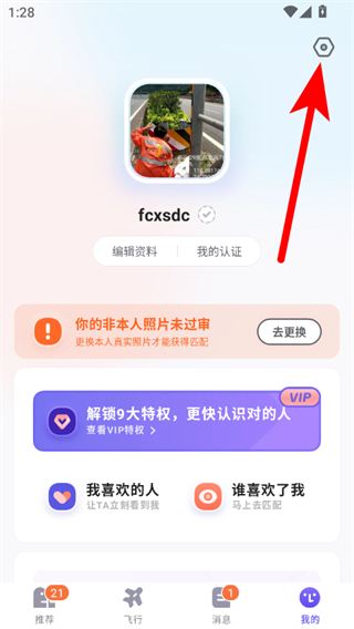 2.在個(gè)人中心界面,點(diǎn)擊右上角的設(shè)置圖標(biāo)。