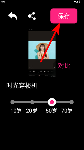 4、調(diào)整好年齡效果后,點擊右上角的保存按鈕,即可保存編輯后的照片。