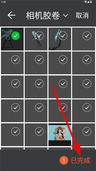 2、在相機膠卷頁面中,選擇要編輯的照片,然后點擊已完成按鈕。