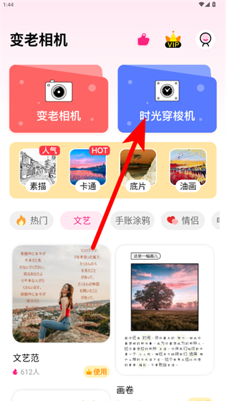 1、打開變老相機應(yīng)用,點擊時光穿梭機選項。