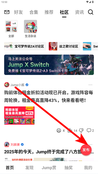 1、打開Jump應用,點擊右下角的發(fā)布按鈕。