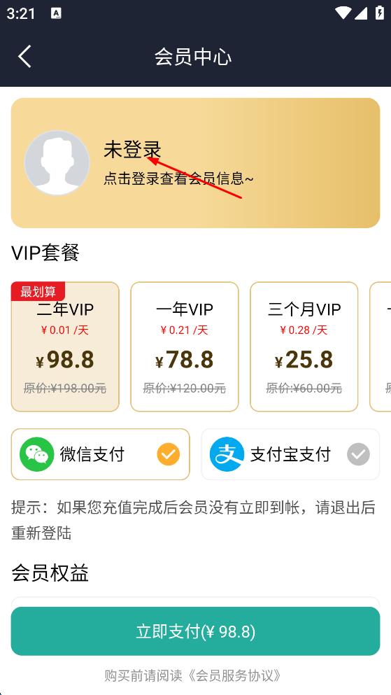 2、進入會員中心頁面,點擊“未登錄”區(qū)域。