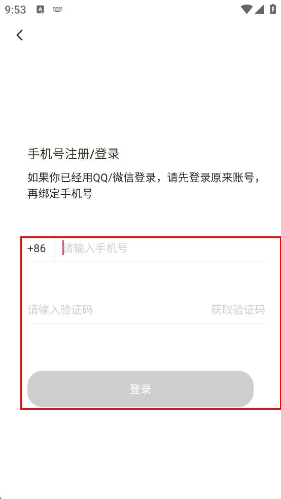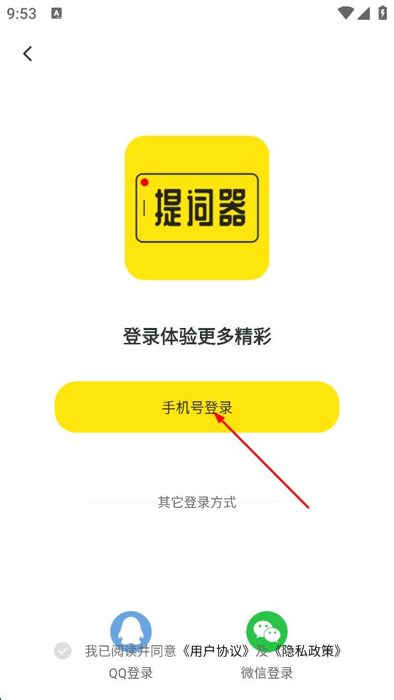 3、在登錄選擇頁(yè)面,點(diǎn)擊“手機(jī)號(hào)登錄”按鈕,進(jìn)入手機(jī)號(hào)注冊(cè)/登錄頁(yè)面。