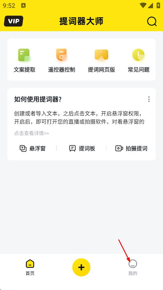1、打開提詞器大師應(yīng)用,進(jìn)入首頁(yè)后,點(diǎn)擊頁(yè)面右下角“我的”按鈕,進(jìn)入個(gè)人頁(yè)面。