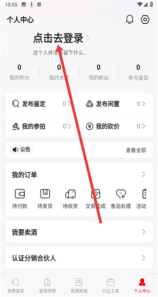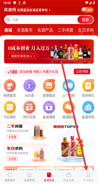 1、打開(kāi)真酒網(wǎng)app進(jìn)入個(gè)人中心頁(yè)面,在頁(yè)面中找到我要賣(mài)酒選項(xiàng),點(diǎn)擊該選項(xiàng)準(zhǔn)備開(kāi)啟注冊(cè)店鋪流程。